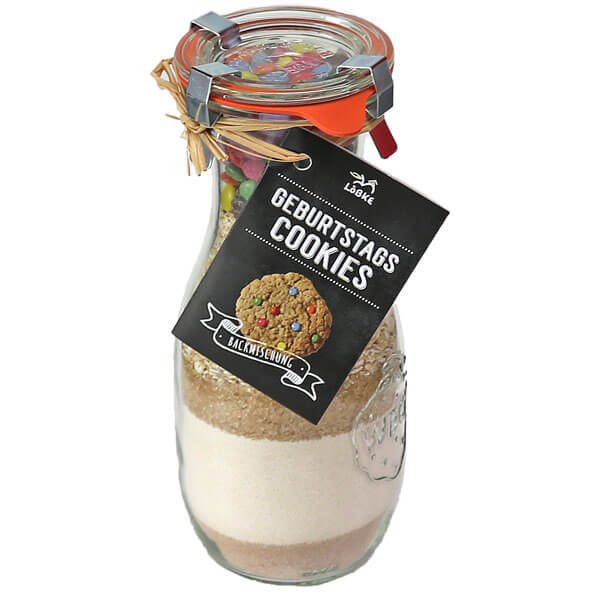 Feiern Sie jeden besonderen Moment mit unseren köstlichen Geburtstags-Cookies! Diese praktische Backmischung im Glas ist die perfekte Lösung, um in kürzester Zeit etwa 30 leckere Kekse zu zaubern. Ideal als Geschenk oder für den eigenen Genuss!
