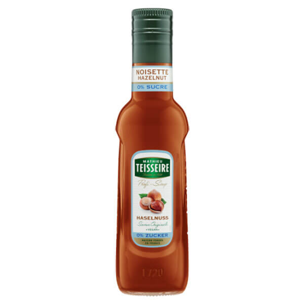 Mathieu Teisseire Haselnuss Sirup 0% Zucker bietet den wunderbar zarten Geschmack und das köstliche Aroma gerösteter Haselnüsse. Ideal für heiße und kalte Getränke, sorgt der feine Geschmack cremiger Nüsse und verführerischen Nougats für eine ausgewogene Süße. Diese luxuriöse Sorte eignet sich zum Verfeinern von Kaffee, heißer Schokolade und Milchshakes sowie erfrischendem Eistee und verleiht klassischen Cocktails eine nussige Note.